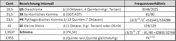 2.3 Kommata, Kleine Intervalle, Abweichungen von reinen