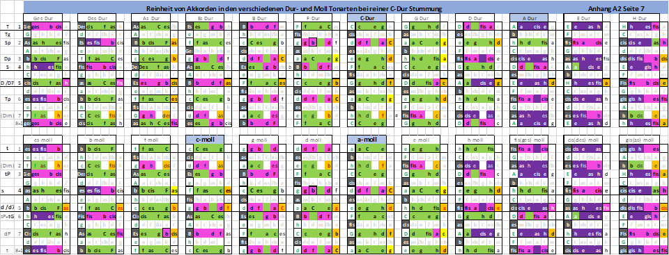 A 2-7 Reinheit von Akkorden in verschiedenen Dur- und Moll-Tonarten bei reiner Stimmung in C-Dur